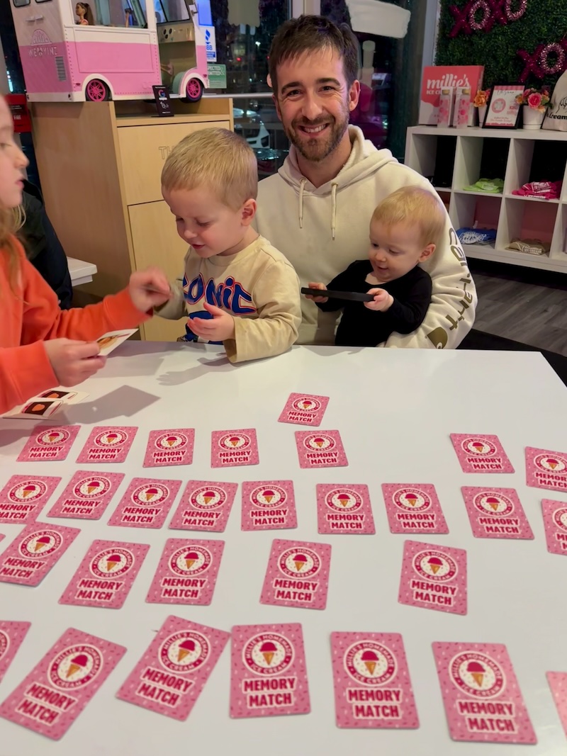Saturday evening found us at one of our favorite places—Millie’s ice cream! Jimmy’s sister met us and we had a great evening filled with ice cream and playing a memory matching game.