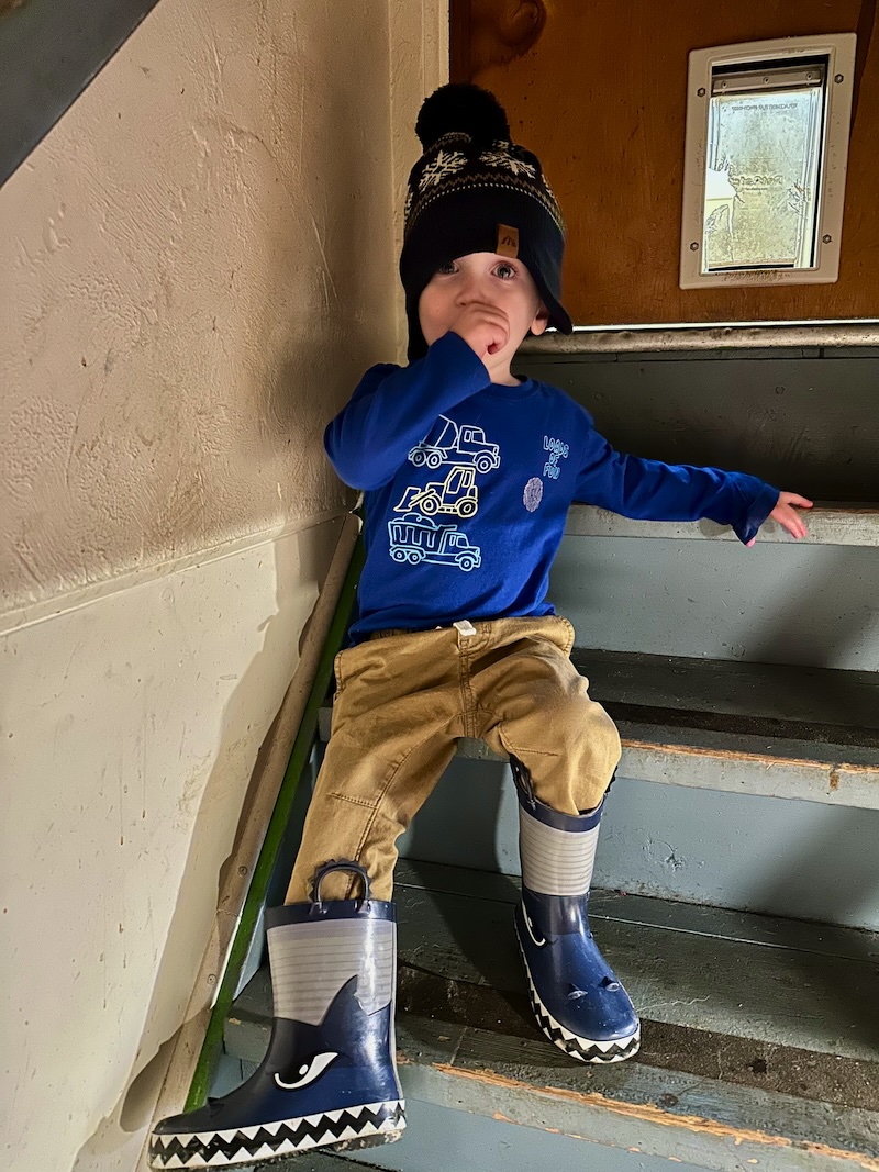 Mordecai picked out his boots and hat for a trip to the grocery store. He’s one cool little guy.