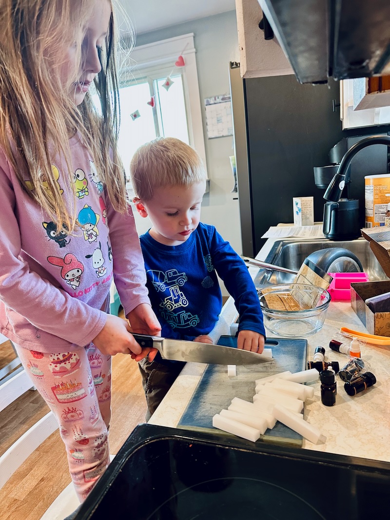 Sadie, Mordecai, and I made homemade soap together with this kit! I am now the proud owner of a bar of lemon lavender soap that smells heavenly. Next project: homemade lip balm!