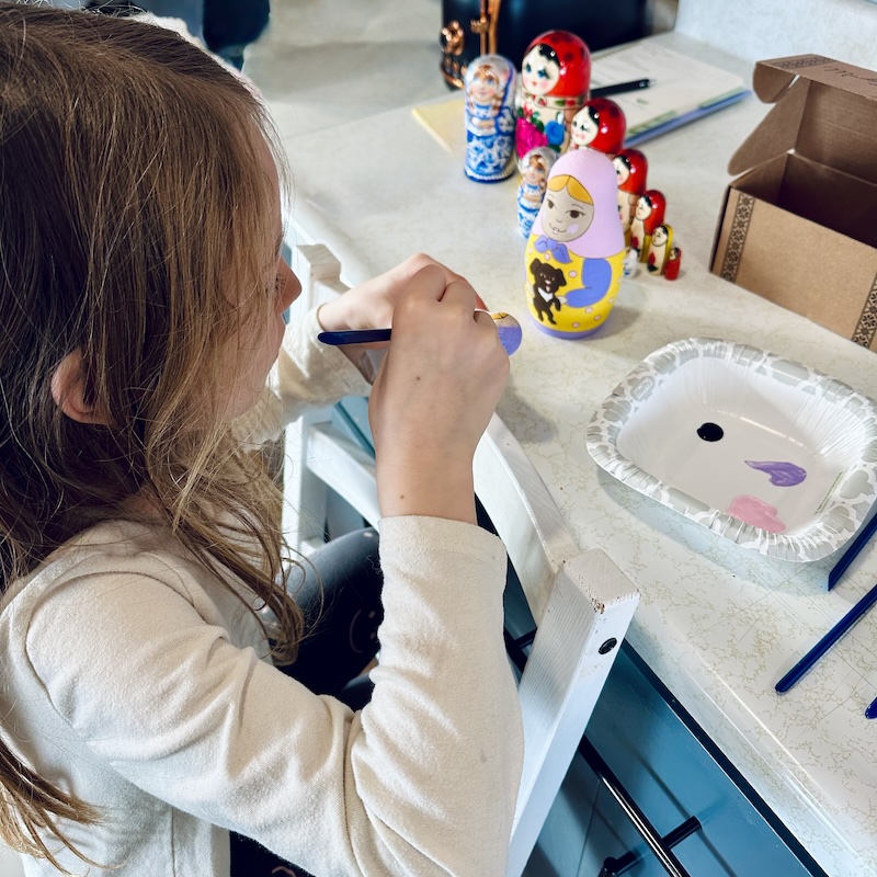 I decided to have Sadie help me paint the Russian nesting dolls I bought for her and she was thrilled! I’m excited to work on this project together.