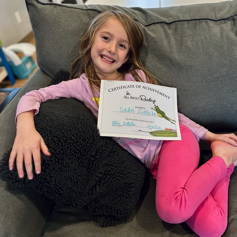 Speaking of schoolwork, Sadie completed All About Reading Level 2! I can’t say enough good things about the All About Reading curriculum. We both love it!