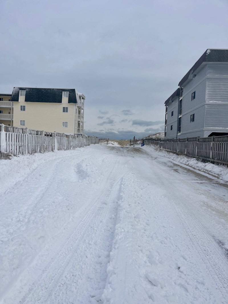 3. Even the beach access by their house had a good bit of snow.