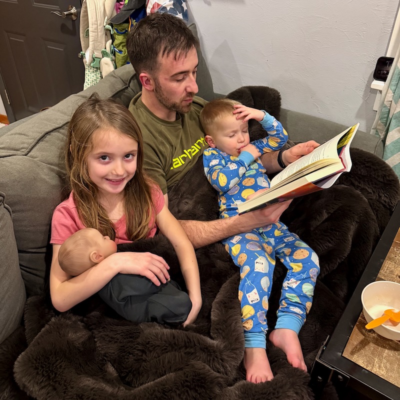 4. Jimmy reading Harry Potter to the kids.