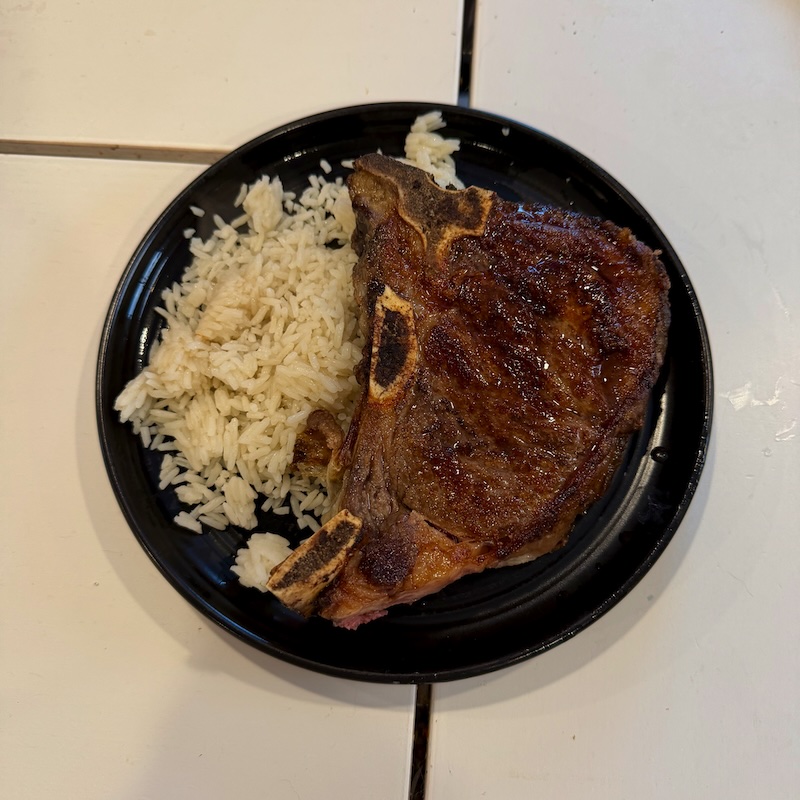 1. A T-bone steak from a local farm with rice. I couldn’t believe the difference in flavor from local meat versus what we buy from the grocery store.
