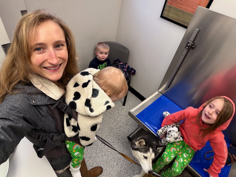 That’s pretty cool! My fav is you at the vet with all three kids! Love You!