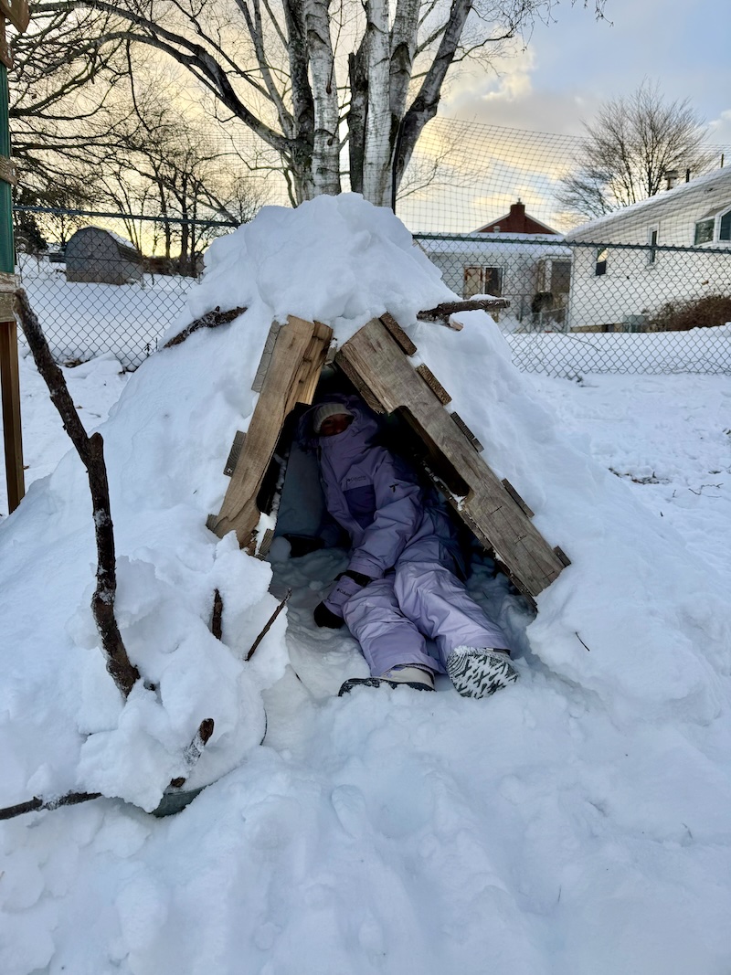 And Jimmy brought the big kids outside to build a shelter in the snow!