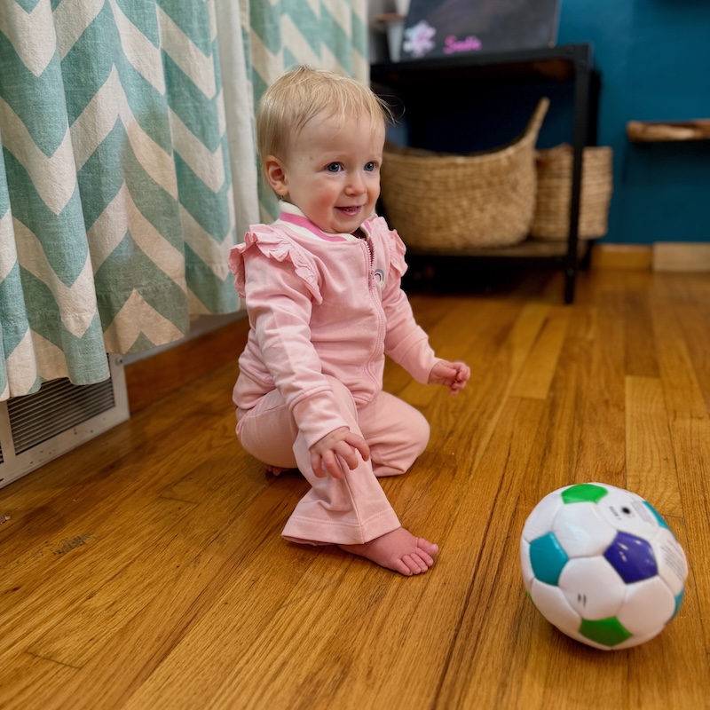 Before her cold and tubes, Dakota played soccer around the house! She looks like she’s ready for the Olympics in her little track suit, ha.