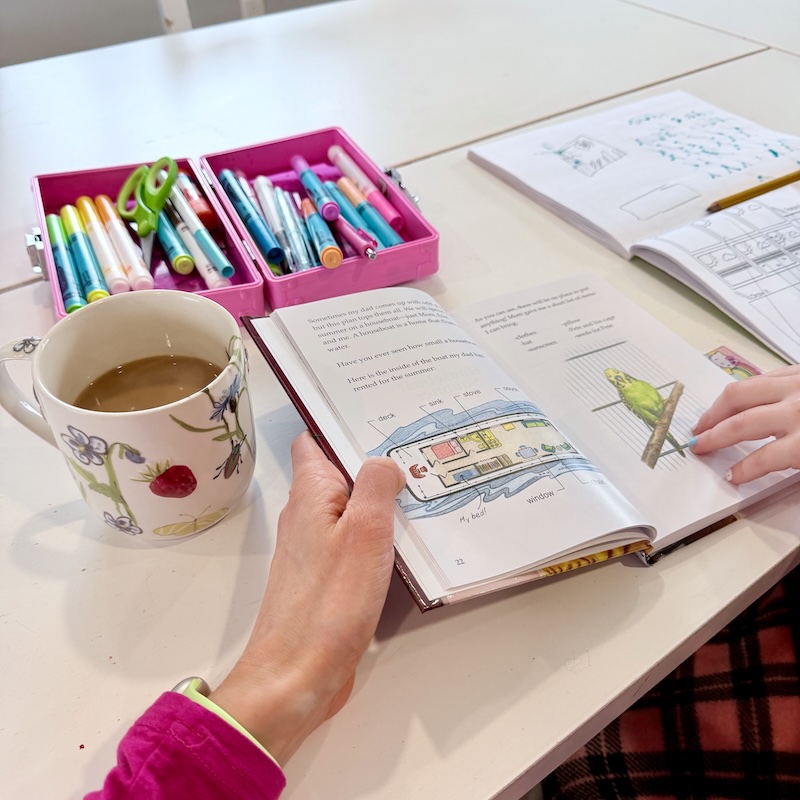 At home, we’ve been trucking along through Sadie’s schoolwork. When I have a warm mug of coffee with me while we work, we can get through any lesson. 😉