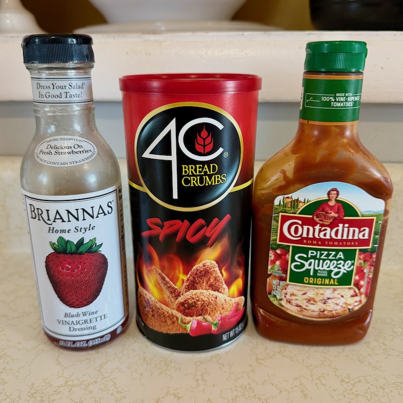 Salad dressing bread crumbs and pizza sauce