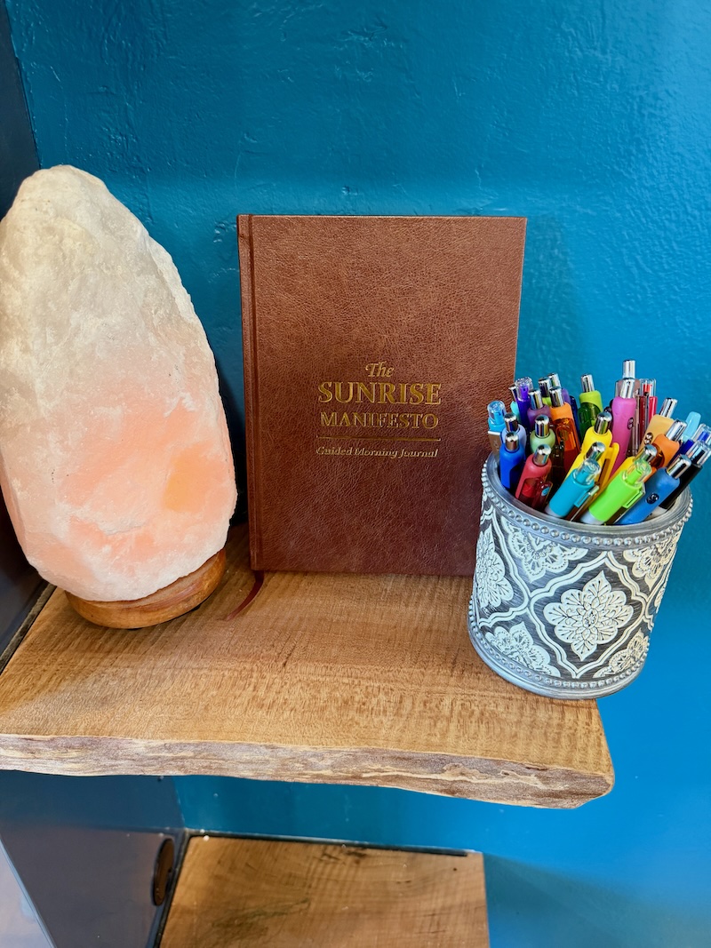 Salt lamp, journal, and pens