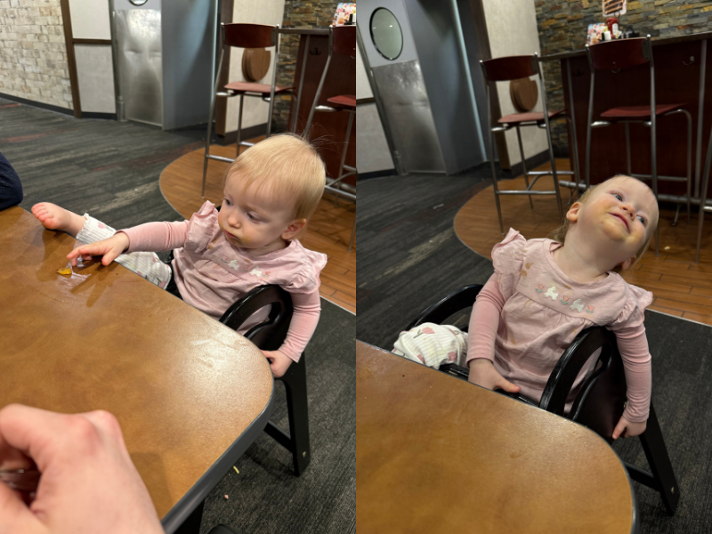 We went out for dinner at Eat ‘n Park and Dakota had us laughing because she got her foot up on the table (as usual!) and was acting silly!