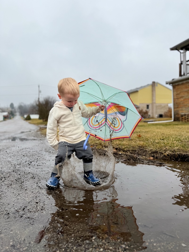 We had lots of rain so I brought the kids puddle jumping. Mordecai absolutely loved it! I need to get him his own umbrella so he doesn’t have to use Sadie’s rainbow butterfly one, lol. 🦋