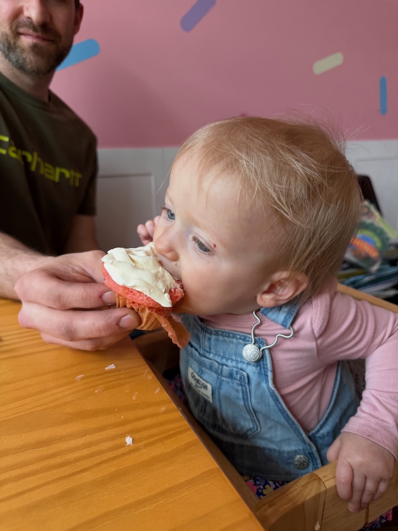We gathered with family at our favorite ice cream shop to celebrate Dakota’s first birthday! We had yummy food: barbecue pulled chicken sandwiches, fruit, charcuterie, cupcakes, and of course ice cream!
