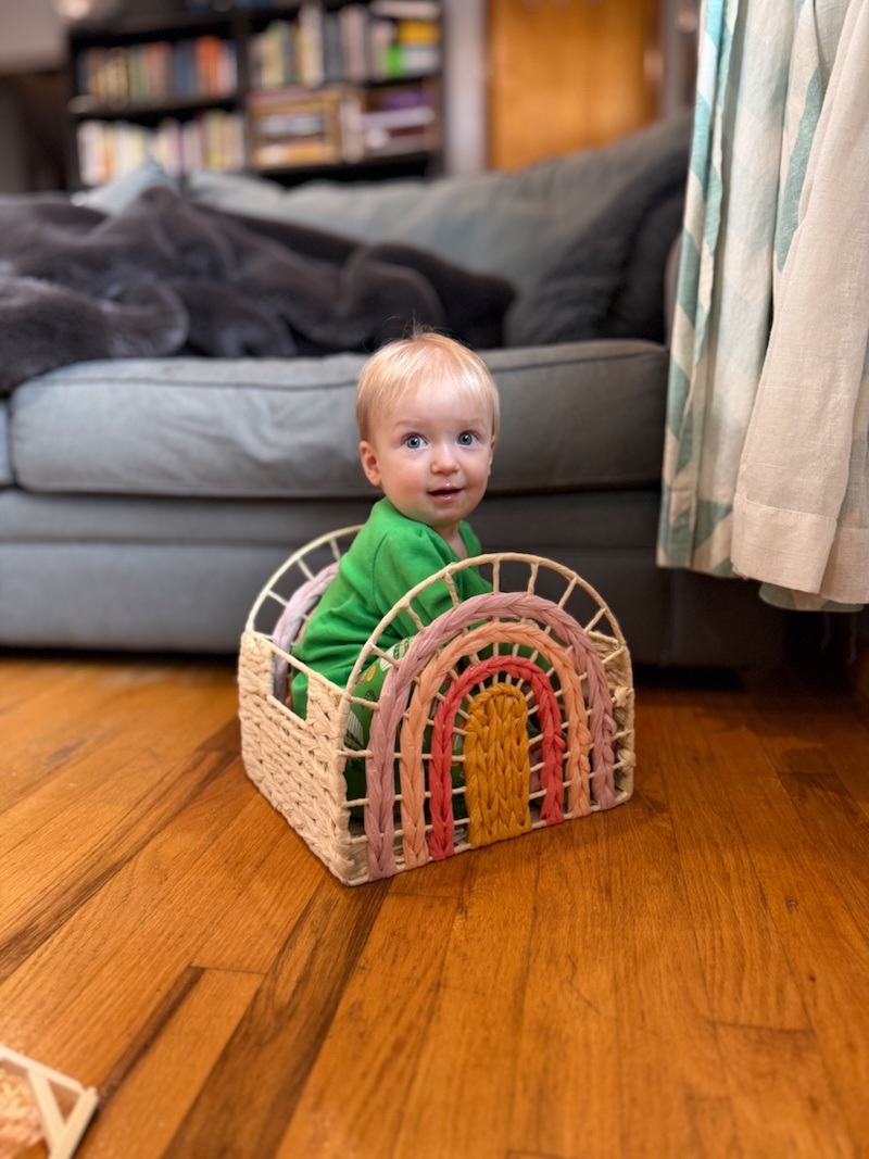 Dakota practiced her climbing skills and nestled herself right into a basket.