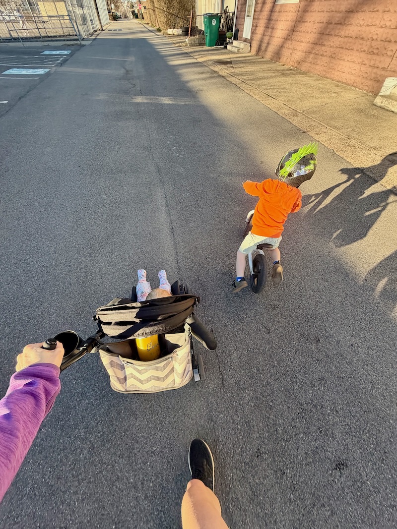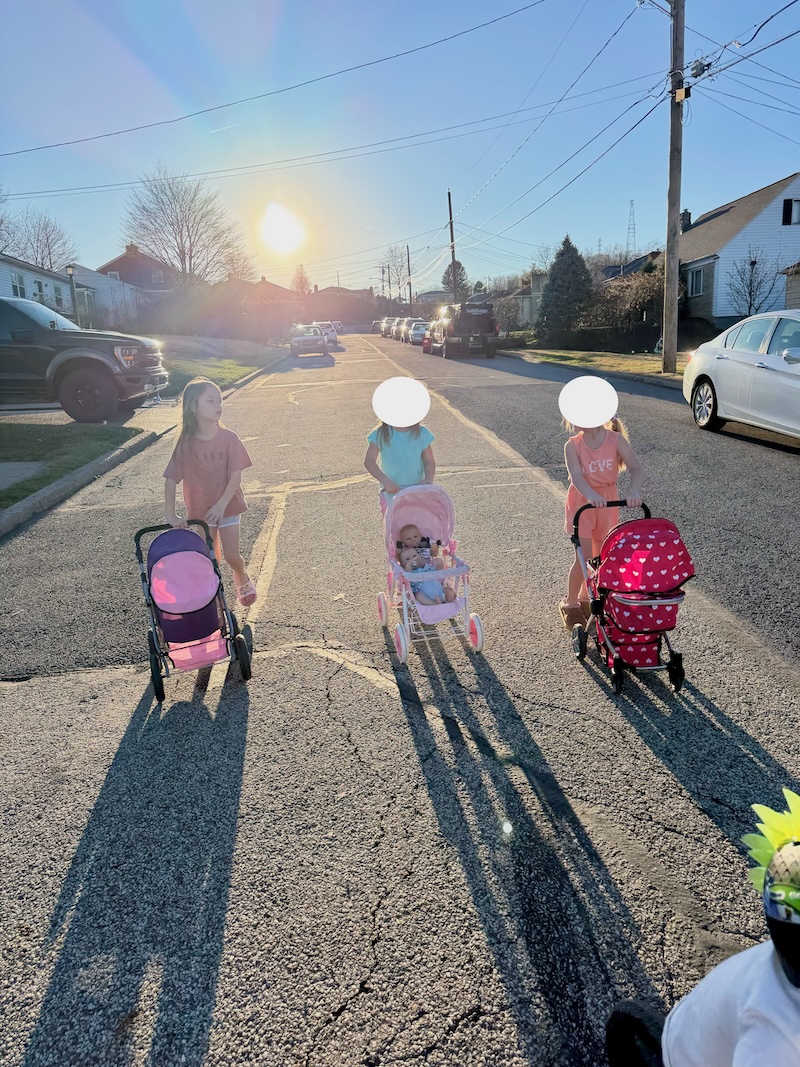 We took Sadie and her neighbor friends (and all their baby dolls 😂) on a walk around the block.