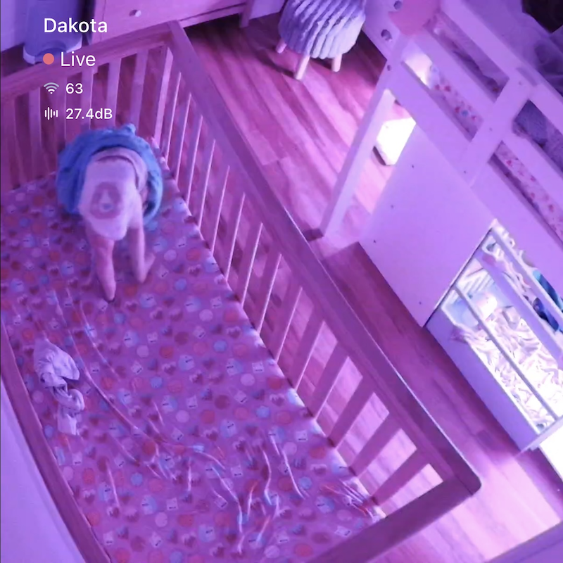 I peeked on Dakota’s baby monitor early in the morning and found her doing yoga. She also managed to get her pants off?! She is our wild child.