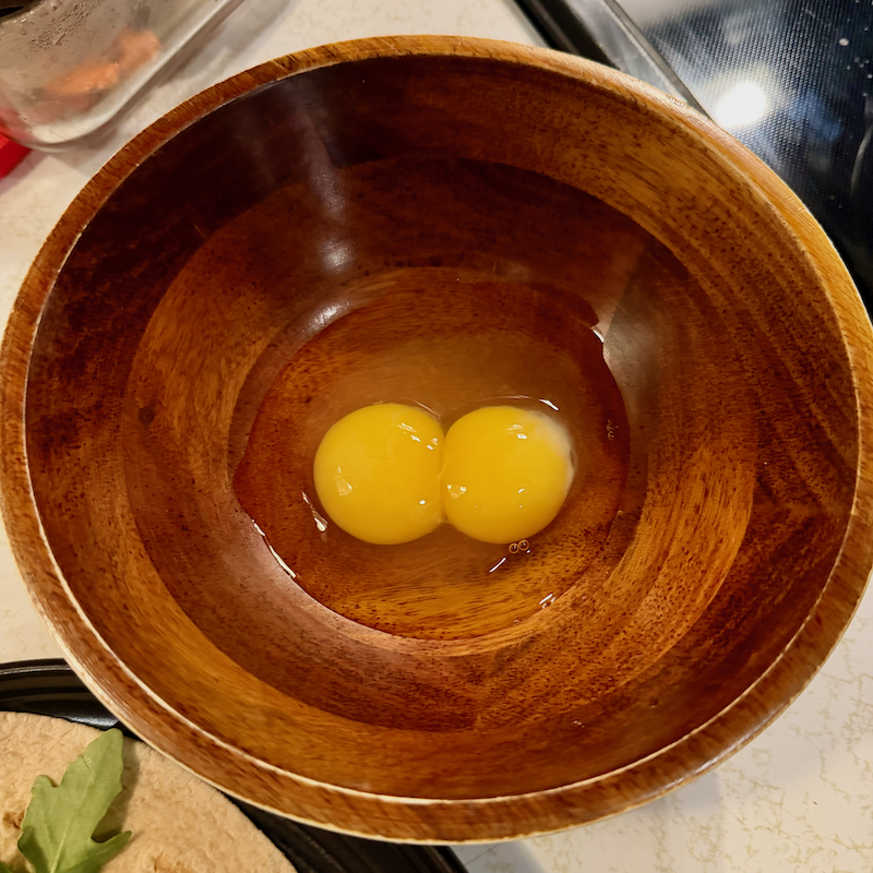 I went to make scrambled eggs one morning and found another double yolk!