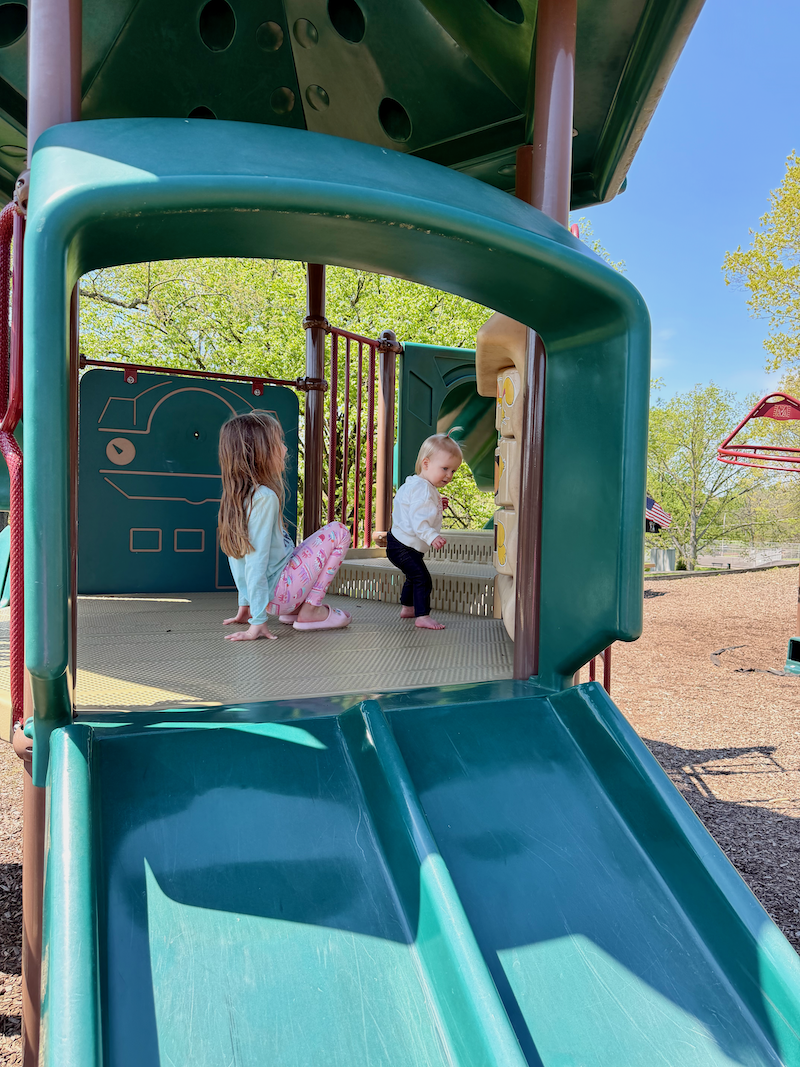 Dakota was so good about sitting and watching from her stroller. She was rewarded for her patience when we dropped by the playground just down the hill from the skate park.