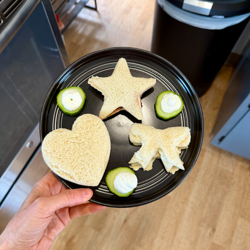 I added peanut butter and jelly into the mix because I wanted them to have something familiar! The peanut butter and jelly was a big win with Sadie. Mordecai was a fan of the ham and cheese. And everything is cuter when it’s cut into a shape, right?!