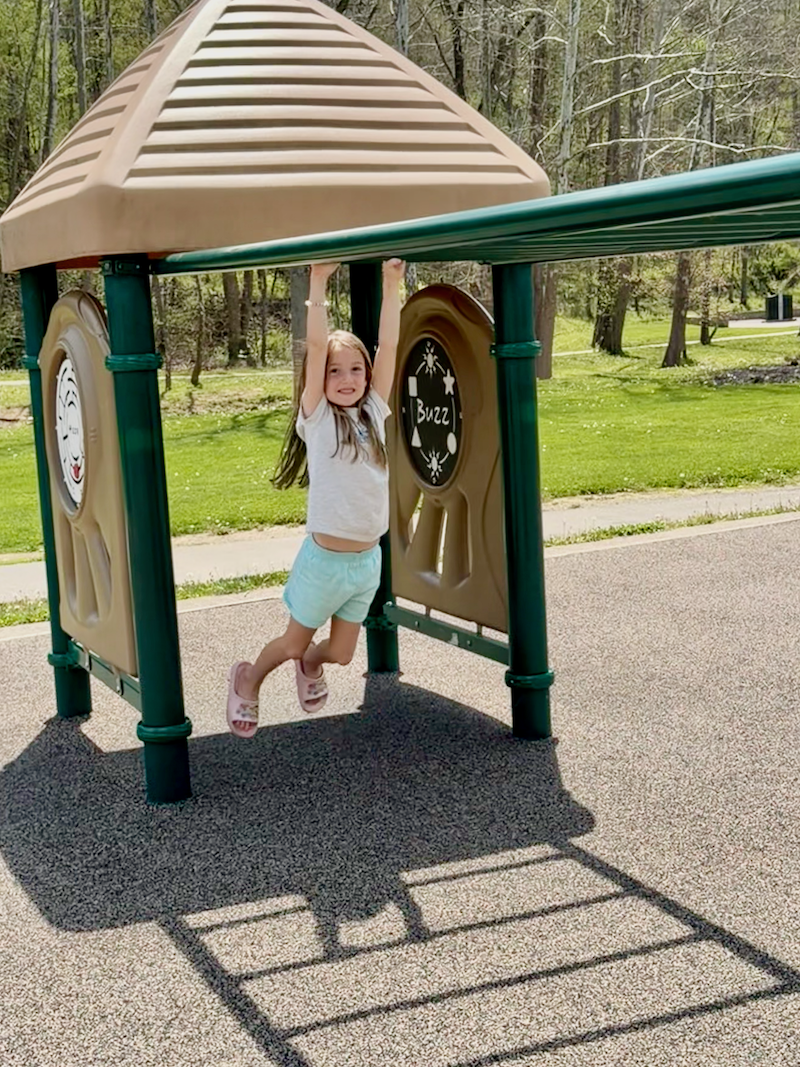 In the afternoon, the temperature hit 80 degrees in Pittsburgh! That called for some outside time. I brought the kids to a park near Jimmy’s work. It has a creek that runs through it, too. We hit up the playground area first!
