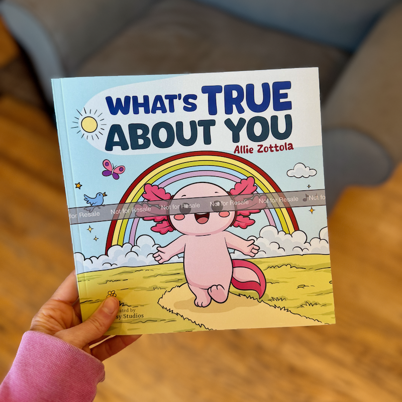 In the evening, something very exciting happened. The author’s copy of the children’s book I wrote, What’s True About You, arrived for me to review! Everything looked perfect, and it felt surreal to sit on the couch and read a book I wrote to Sadie. It was truly a dream come true.