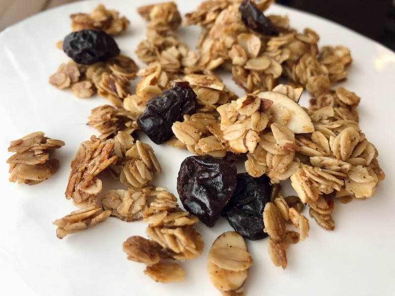 6. Cool granola on cookie sheets for about an hour and mix cherry pieces in. Store in a sealed container for up to four months. Enjoy!