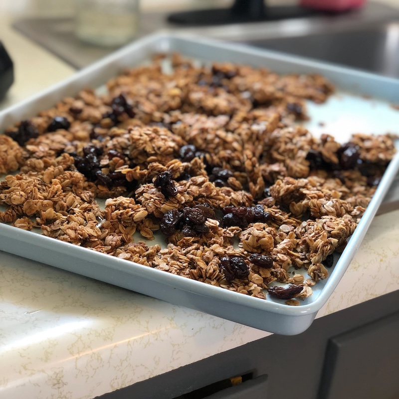 7. Let the granola cool on the pans for an hour. Store at room temperature in a sealed bag or container and enjoy!