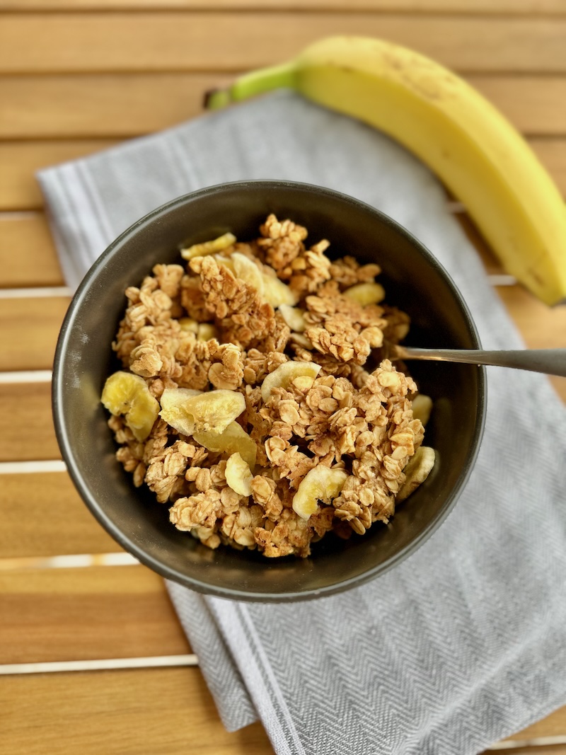 If you love peanut butter and bananas, this healthy banana peanut butter granola is for you! Crunchy, naturally sweet, and completely homemade, it’s the perfect breakfast, snack, or yogurt topping that’s better in taste and nutrition than the store-bought stuff!