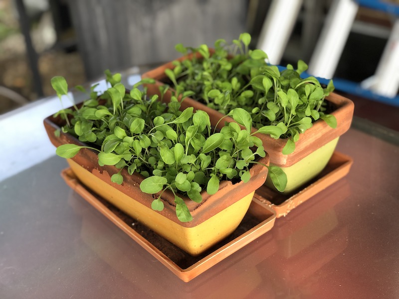 9:00 am It’s a beautiful day so we head into our yard to hang out. I make another coffee and bring my prayer journal with me outside. We head up to the garden and pick some tomatoes and zucchini. I also check on the arugula I recently planted, which is growing well.