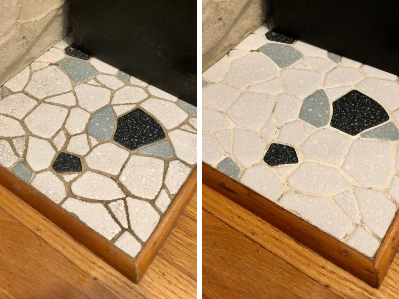 7:00 am Sadie is stirring in her crib! She sounds happy so I take a few minutes to make the bed and straighten up the house. I’ve been working on cleaning the grout near our tv stand. I used a mixture of dish soap, vinegar, water, and baking powder and scrubbed it with this and it started to look a little less dingy 😉