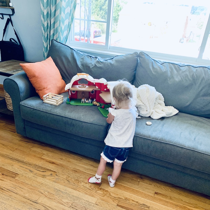 I can’t sit at the table because laptops = toddler magnet, lol.