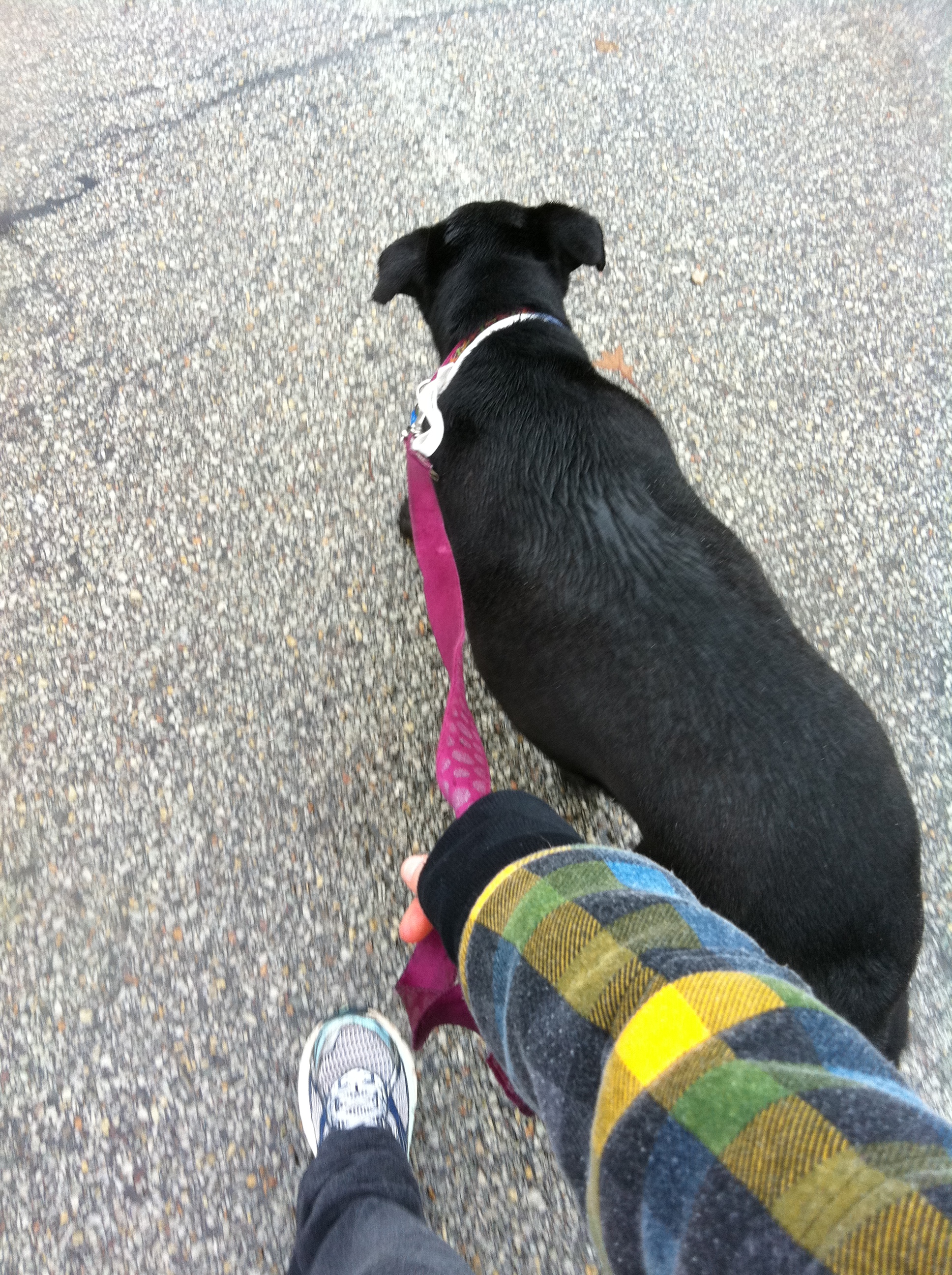 7. Lola still loves going on walks. Even with it is cold and raining..