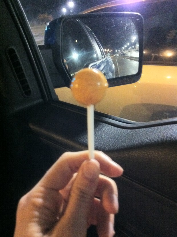 6. I went to the mall before church on Wednesday and really wanted a chocolate/vanilla lollipop from a machine and I went through three quarters trying to get that flavor. Then I ran out of quarters and had to settle with peaches & cream.