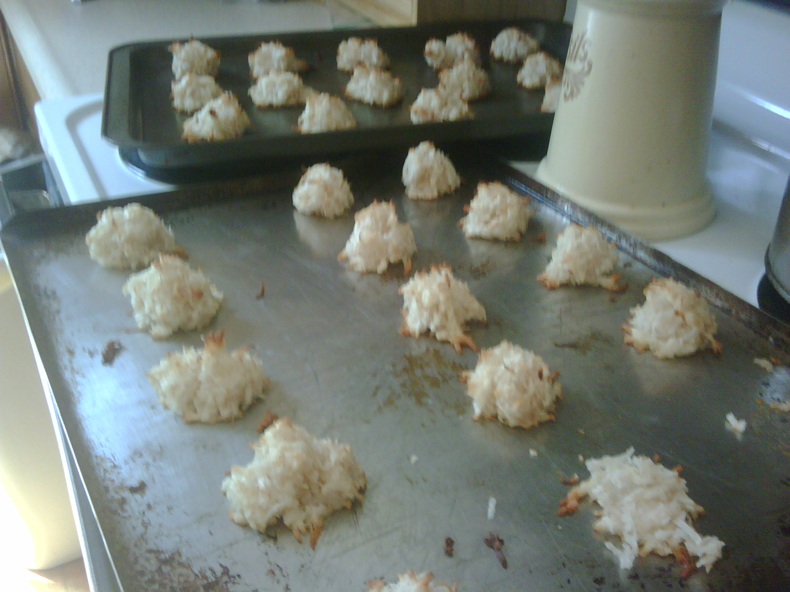 2. Drop coconut mixture into mounds, 2 inches apart, on prepared baking sheets, using about 1 tablespoonful of the coconut mixture for each mound. (This should make A LOT of mounds, btw!)