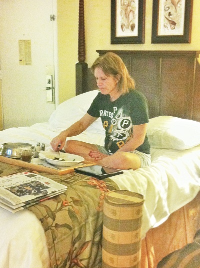 I had to include this one… my mom ate her room service meal sitting cross legged in her bed like a little kid. Too funny.