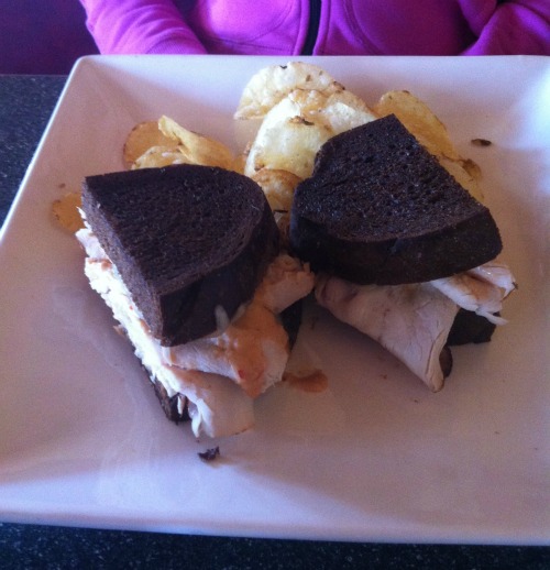 Turkey on pumpernickel with chips.