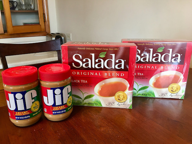 The Jif peanut butter was on sale and I had a $1.00 off coupon, so each jar was $1.17. The Salada tea was buy one, get one free and each box ended up costing $1.75.
