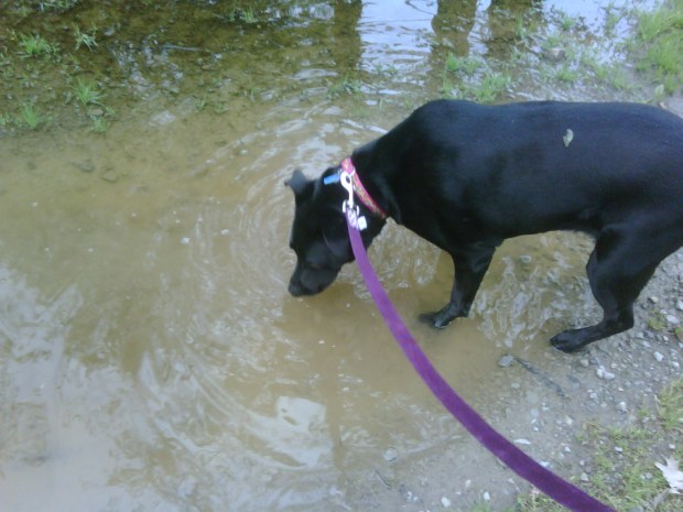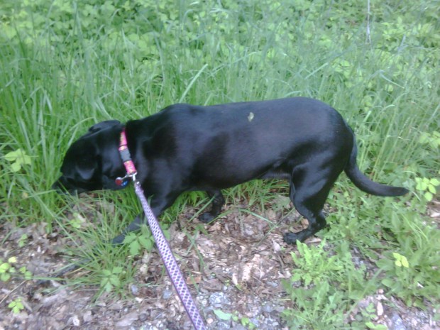 Ever since I have been on summer break she has been living it up. Partying all night with dog treats and playing all day on trails with me.. everyday.