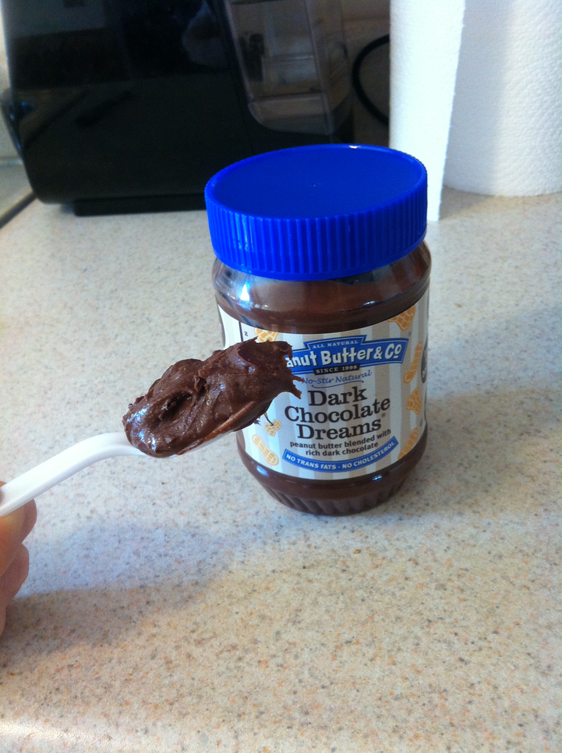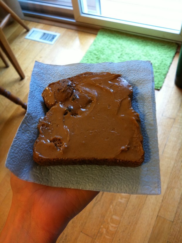 Toast with peanut butter… see that little bit of different pb in the top left corner? I wasn’t sure if I would like cinnamon raisin pb on bread so I put it on the corner along with regular pb all over the toast. I did like the cinnamon raisin though and I wish I had put it all over the toast instead of regular pb! I wonder if anyone else does things like this?!