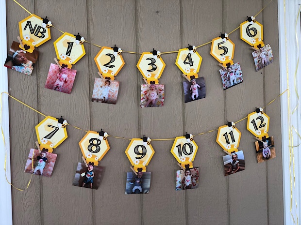 I thought it would be fun to have a bee-themed party, so we took that and ran with it, haha. We called it her “bee day party” and even found these adorable invitations. My sister lent us a bumble bee dress her daughter had been given (I called it a hand-me-up since Sadie is older than Caroline, lol) and I had an absolute blast making cupcakes and treats.
