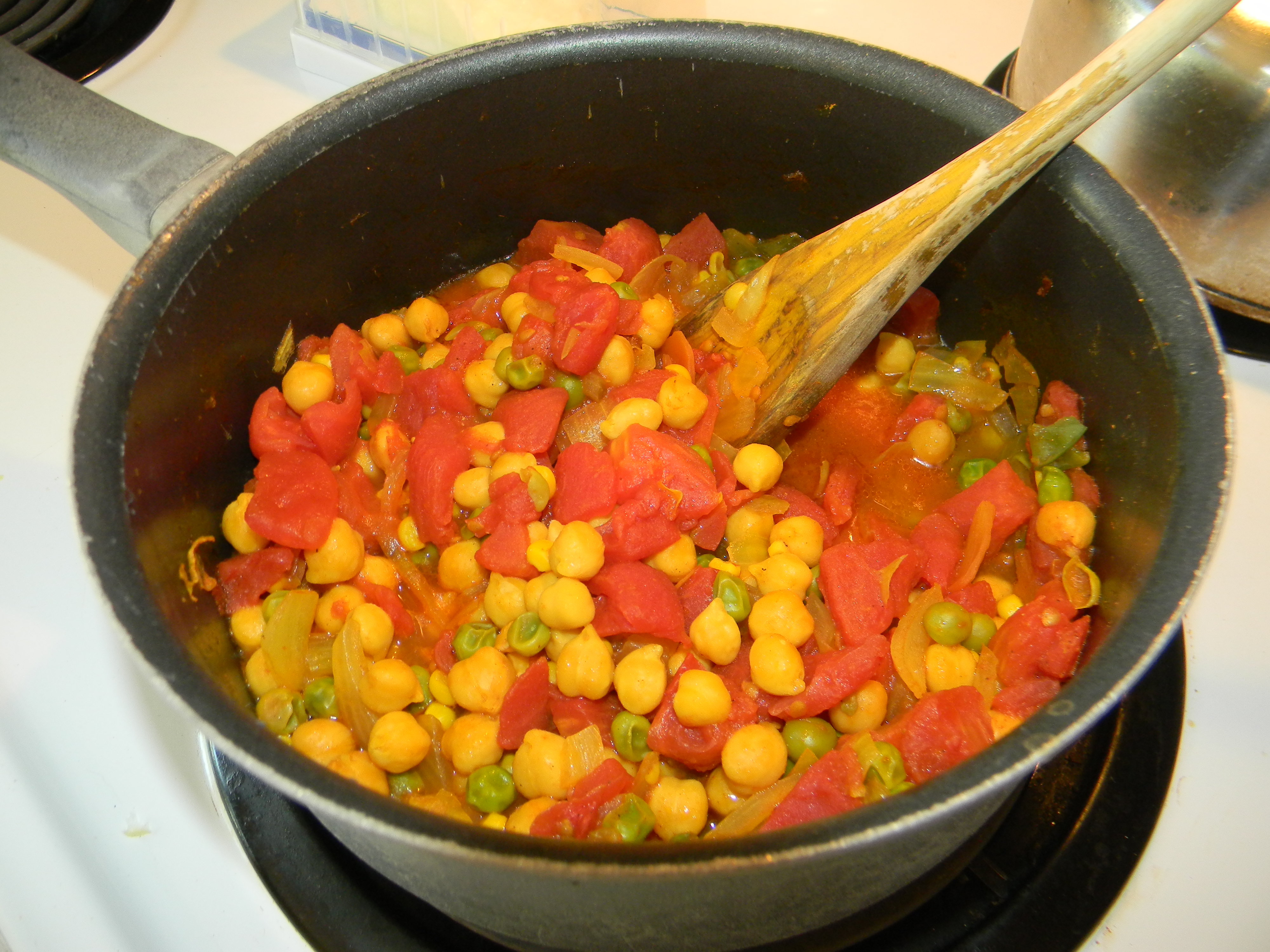 This is totally random. I just put together leftover peas, chopped onion, canned tomatoes, and chickpeas for some sort of chana masala stew?! The best thing about this was the spices I used: turmeric, cinnamon, cumin, and chili powder!