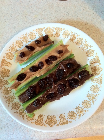 “Ants on a log” with peanut butter and Nutella!