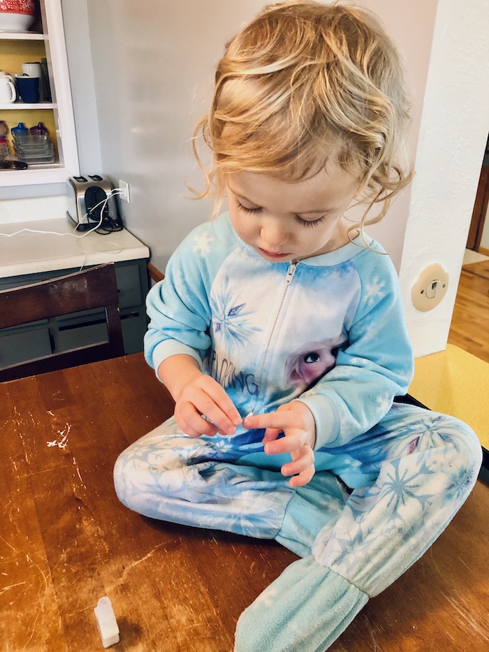 She decided to paint her nails on the kitchen table and I decided to document that. She also painted my nails. And my hand. And a little bit of my arm. I got the whole spa treatment 😉