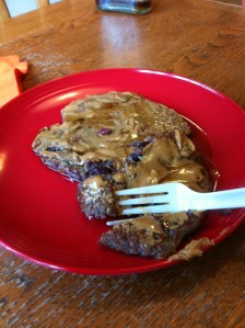 Yes, this picture looks gross but gross looking food is the best, right?! Berry pancakes with peanut butter and maple syrup. Hollie would be so proud of me eating my weight in pancakes 😉