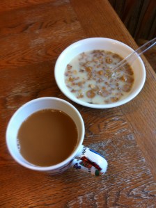 Jamie and I share a love for cereal in a coffee mug 🙂