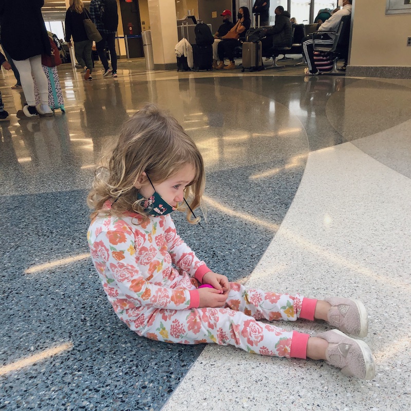Our first flight home was at 7:35 am, so we were up bright and early (4:15 am 😴) to drive the 1.5 hours from the Outer Banks to Norfolk International airport in Virginia. From there,  we said so long to my parents and thanked them for such a great week! Well, I did. Sadie? She wailed for my parents. She did not want to leave them!