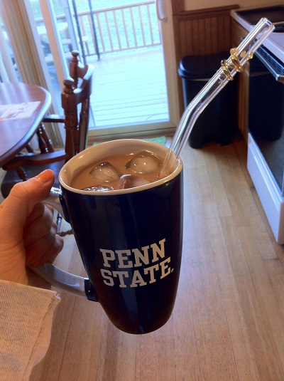 Iced pumpkin coffee in a mason jar. I didn’t know what is so cool about mason jars because drinking this made my hand cold!