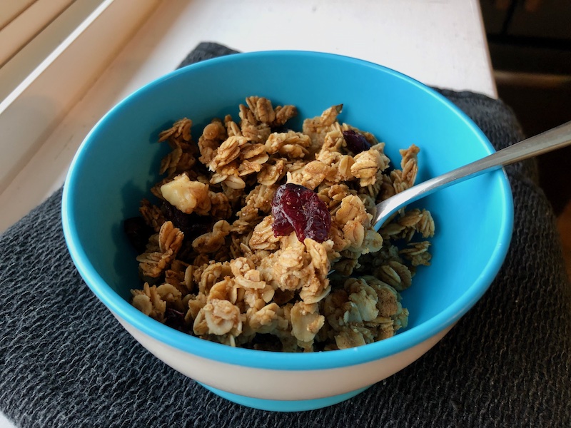 As I mentioned in my last post, I was developing a gingerbread granola and I finally nailed it down! It’s basically a gingerbread cookie, but in granola form. It has oats, nuts, dried cranberries, molasses, honey, and all sorts of spices. Definitely a new favorite of mine.