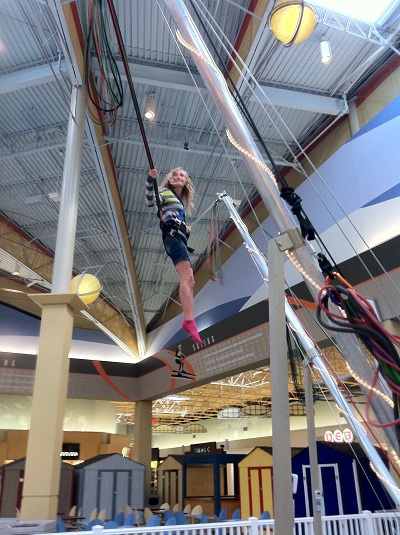 I don’t really know how to explain this. The Pittsburgh Mills Mall has this big bouncing contraption. For $7.00 an attendant will strap you into a harness and you can bounce and flip on a trampoline. I hopped in line with all the other 6-year-old children at the mall and it was a blast. I like to embarrass myself.