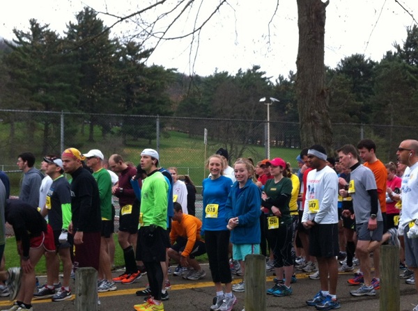 I was unable to run the Montour Trail half marathon last year because I was injured. I did run the same freezing cold half marathon that I ran in March 2011. I got a 1:41:32 (7:44 pace).
